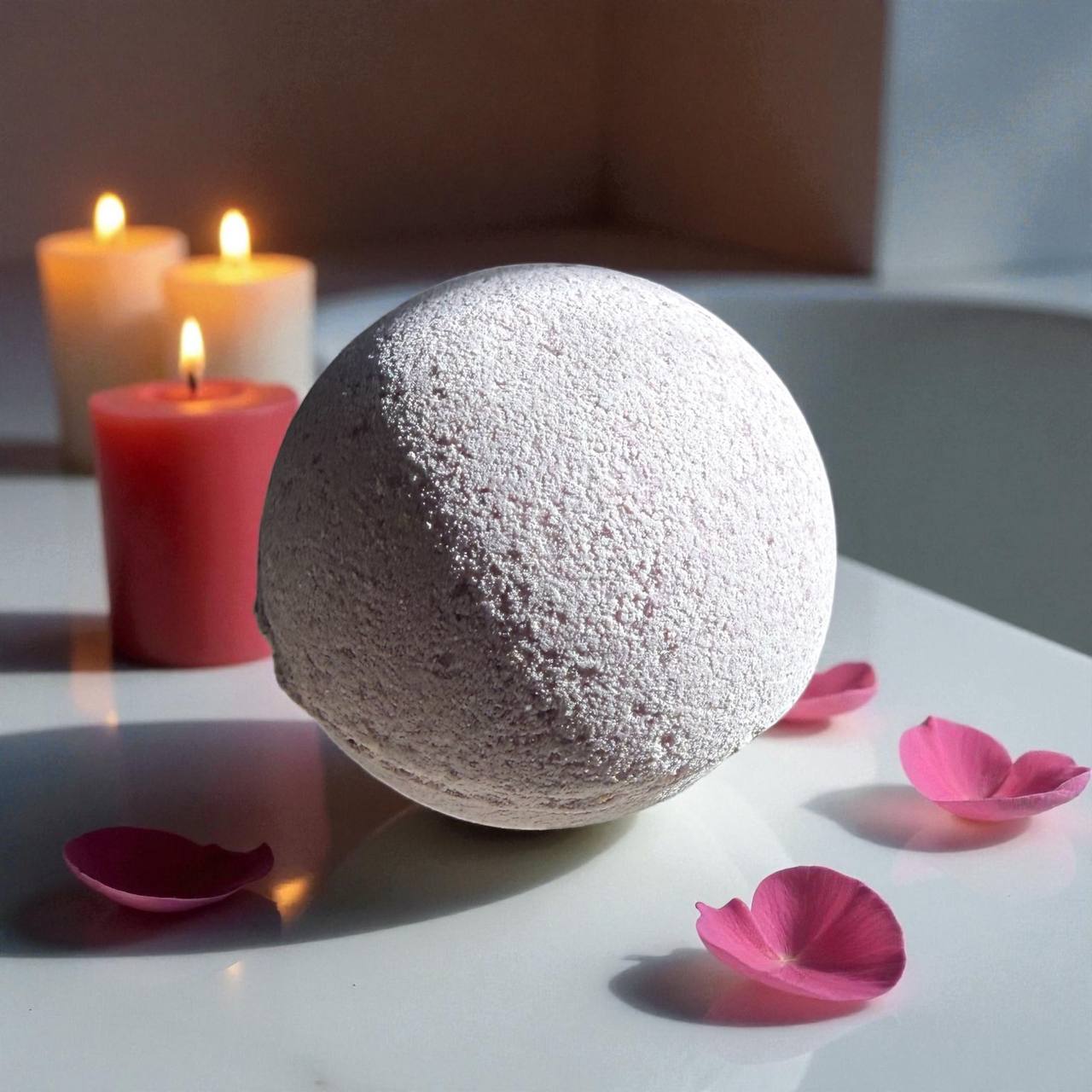 As the bath bomb dissolves, notes of lavender and sage drift through the air while the water softens and soothes. With your candle glowing nearby, the ambience becomes layered and complete — the perfect pairing for peace at day’s end.